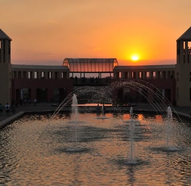 Pela tarde, quando a luz natural destaca os volumes arquitetônicos e o entorno.