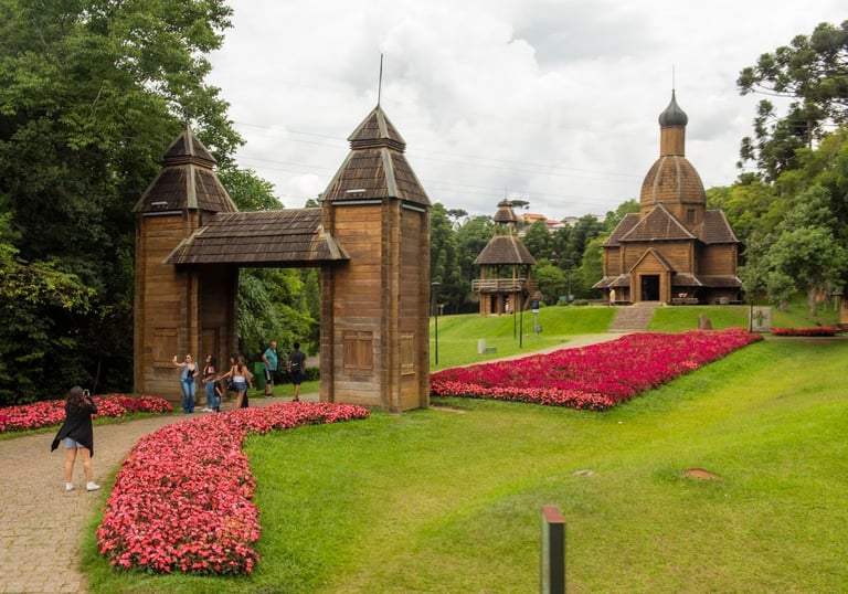 Localizado dentro do Parque Tingui, o memorial em madeira homenageia imigrantes ucranianos no Paraná, apresentando exposições sobre arte sacra, tradições e história da comunidade.