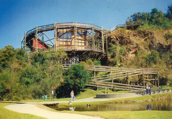 Instalado na década de 1990, o bosque homenageia a cultura dos imigrantes alemães. A trilha “João e Maria” leva até a Casa Encantada. Há encontros semanais com contação de histórias e vista da cidade no mirante.
